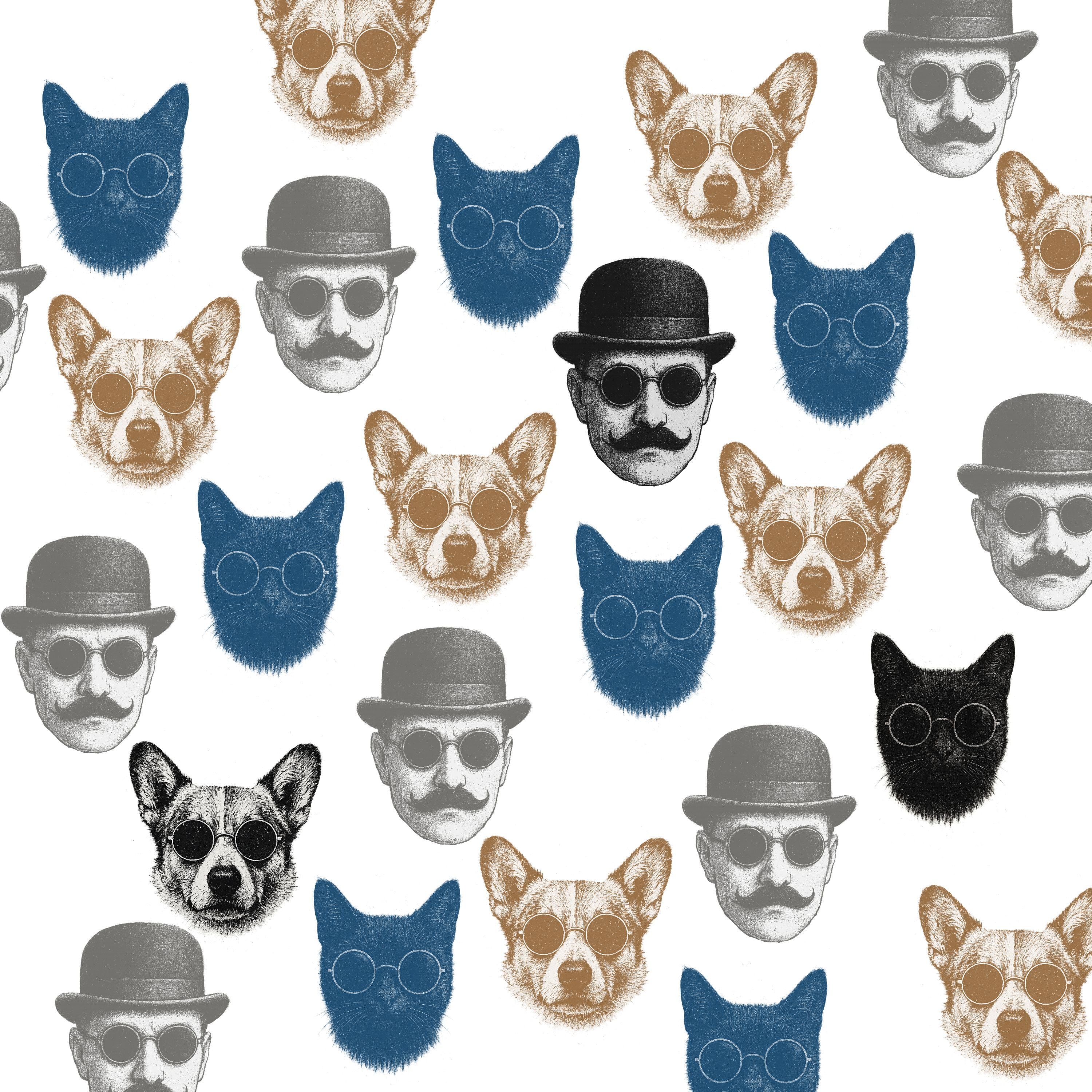 ボウラーハットの紳士、ニヒルなコーギー、そしてクールな黒猫。