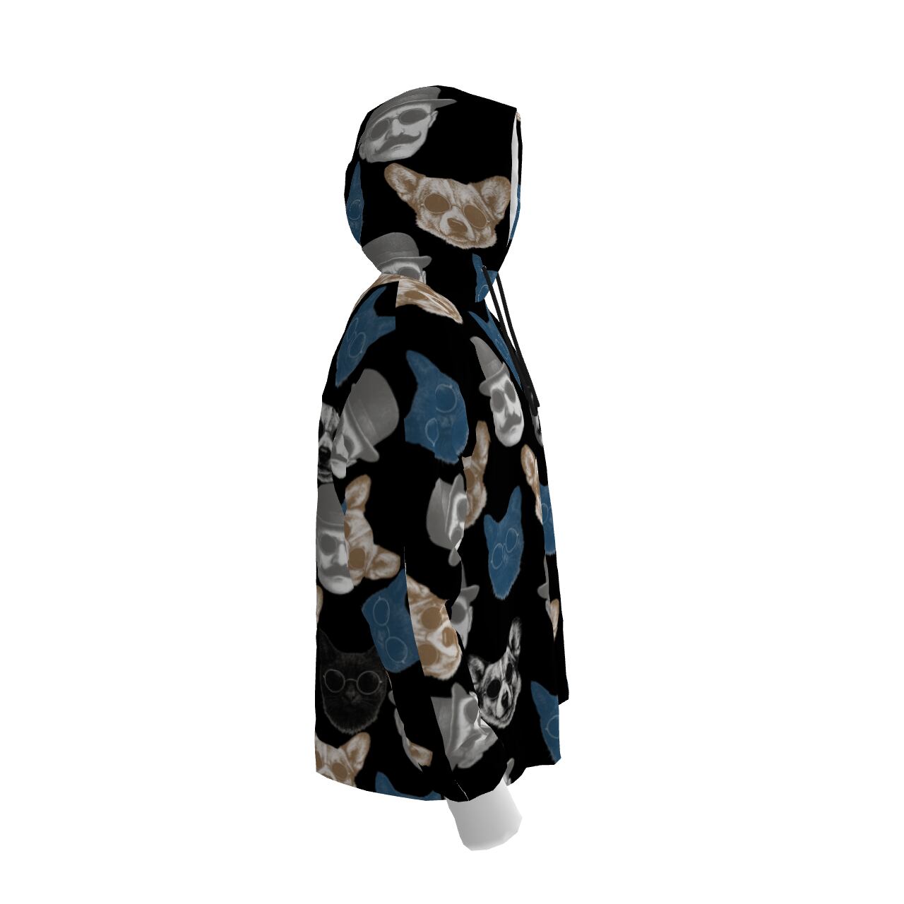 肩の切り替えがなく、ゆったりと落ちるドルマンスリーブが特徴の総柄パーカー。
